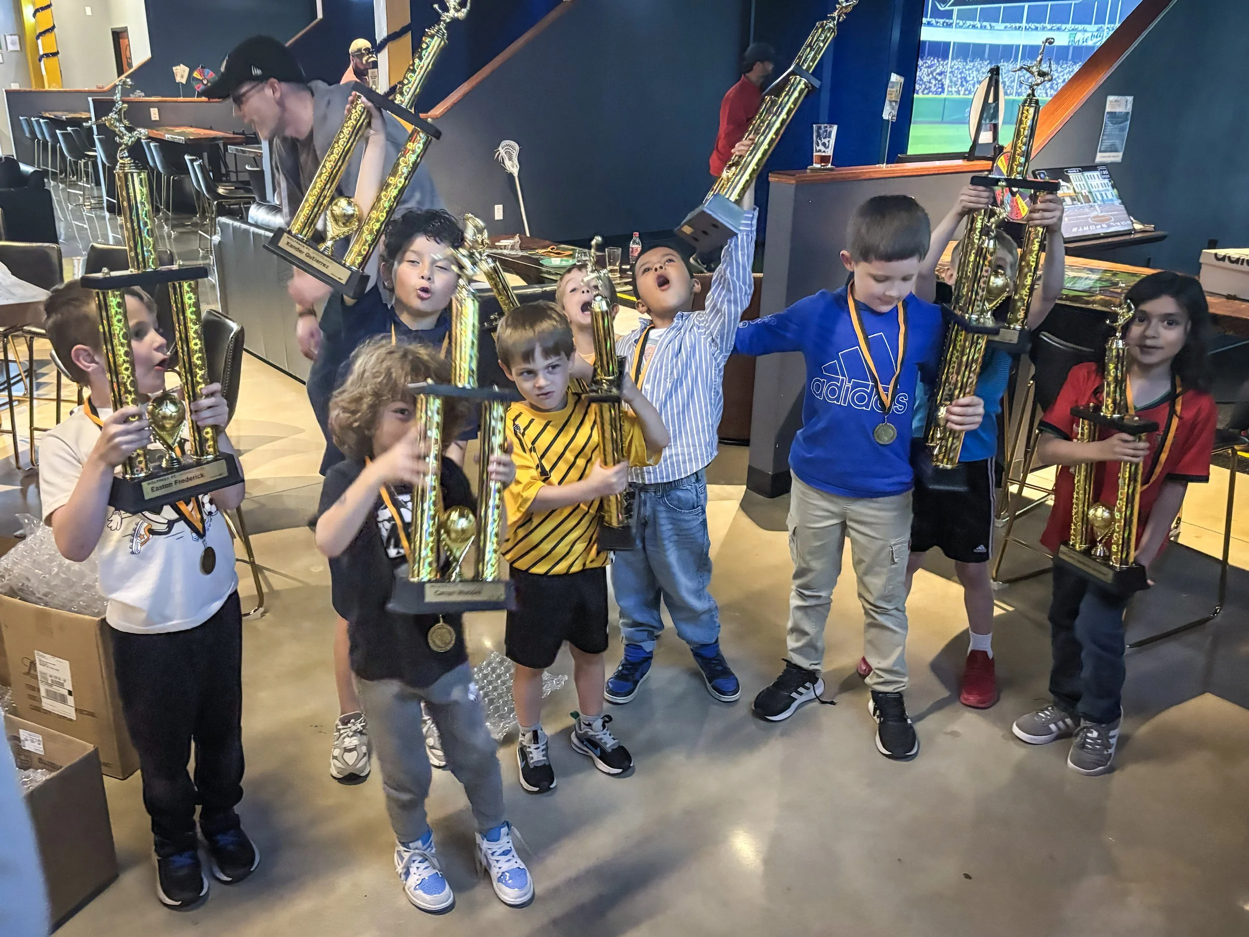 We had an End-of-the-Season party at Birdies & Brews last year after our last game, and it was SOOO much fun. We also bought them ridiculously oversized trophies (and a medal to go with it!).